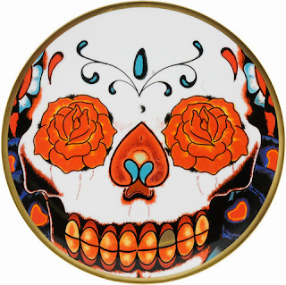 I don't even remember how or when I came across The New English company. It's a group of UK artists that make contemporary ceramics and they seem to love skulls as much as I do. Take a look at these happy skulls that are a small part of a complete dinnerware set. If you're planning on getting married next Halloween, I think you need to have these on your gift list. I might have to get remarried.